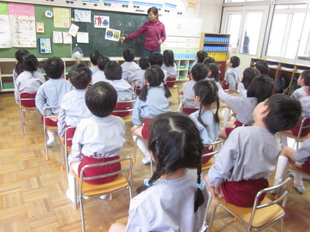 英語活動では、冬の衣服について英語で教えて頂いたり、