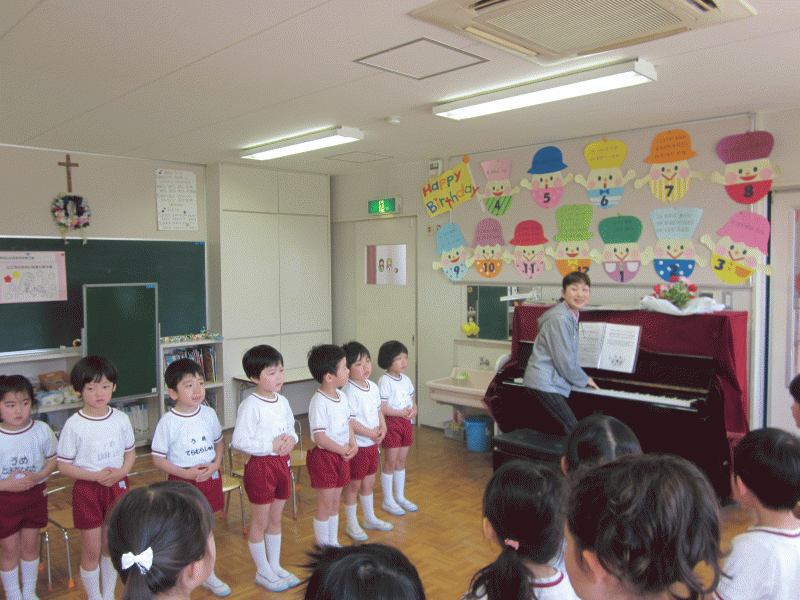 「Welcome to school today〜♪」と楽しくお歌をうたいます♪