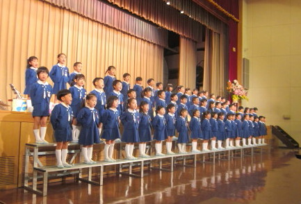 その後、幼稚園で一番大きな年長組のお兄さん、お姉さんから、歓迎の言葉と歌のプレゼントがありました。