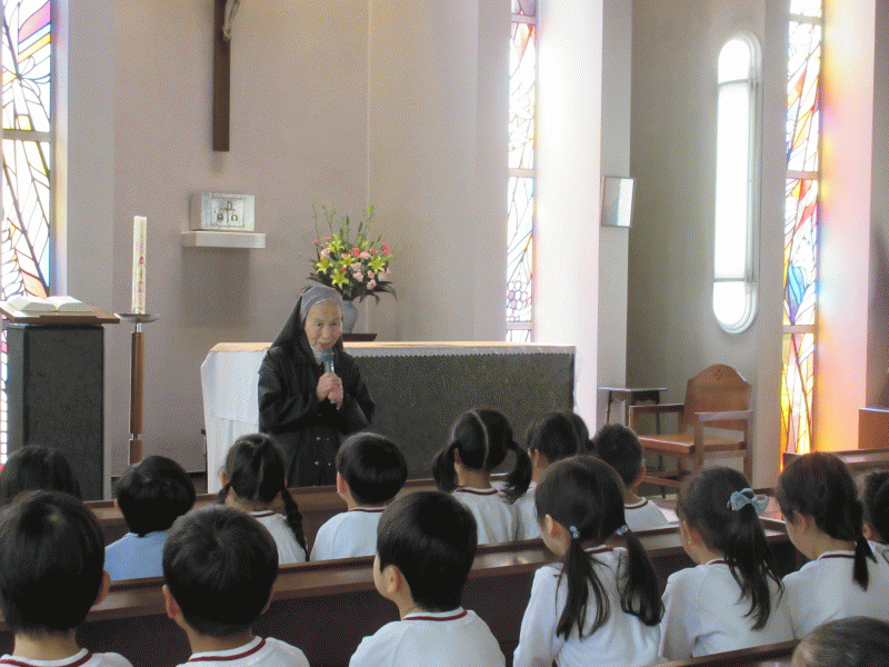 みんなと一緒にお祈りをして、園長先生のお話を上手に座って聞いていた子どもたちです。