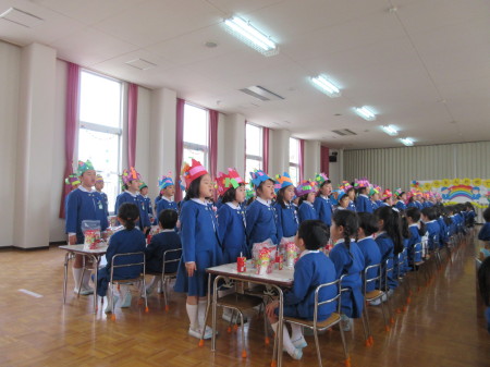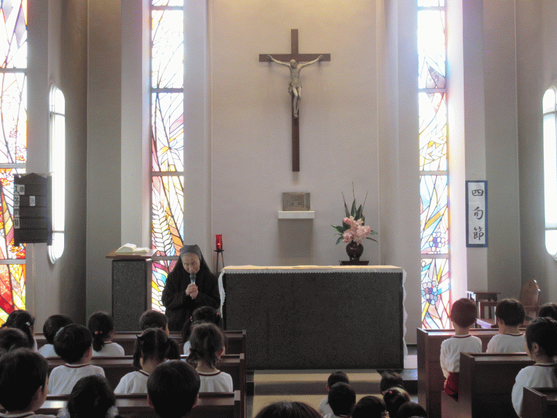 園長先生からお話を頂き、みんなで優しい気持ちでお祈りしました。