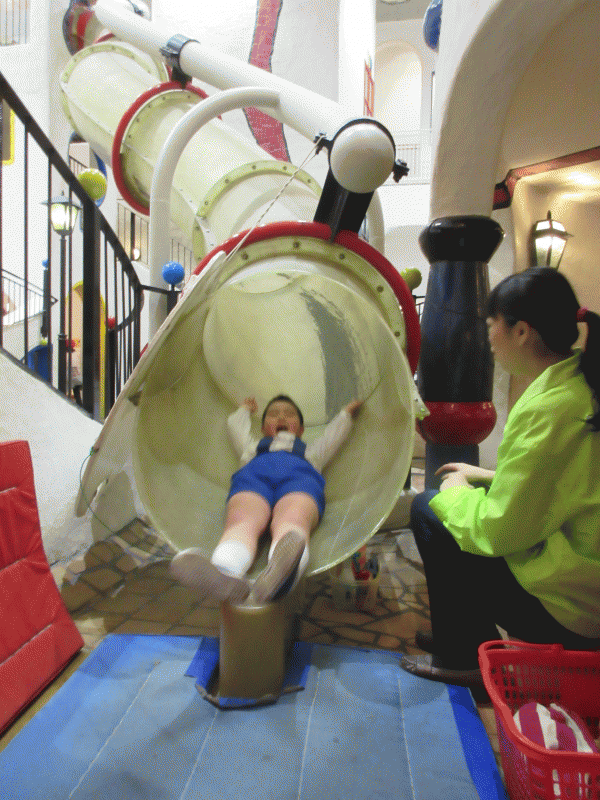 キッズプラザの、5階〜4階に滑り落ちる長いすべり台。