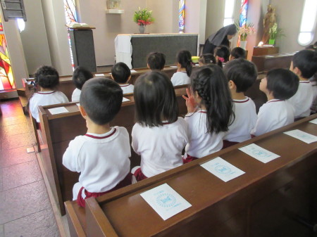 今日、年少組でも聖堂に行き、献金をお捧げしてきました。