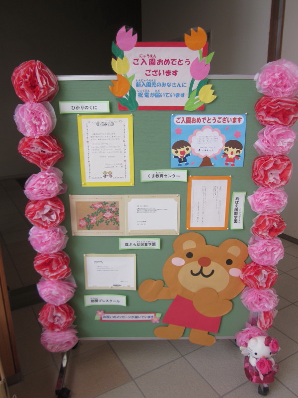 遊戯室の入り口には、いろいろな方から届いた祝辞が、