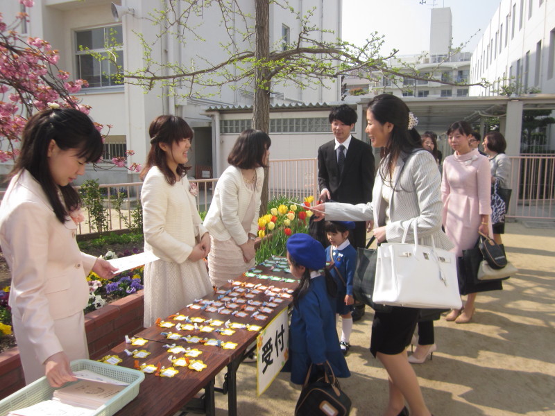 幼稚園に着くと、ピカピカの名札の所に一直線の子ども達!