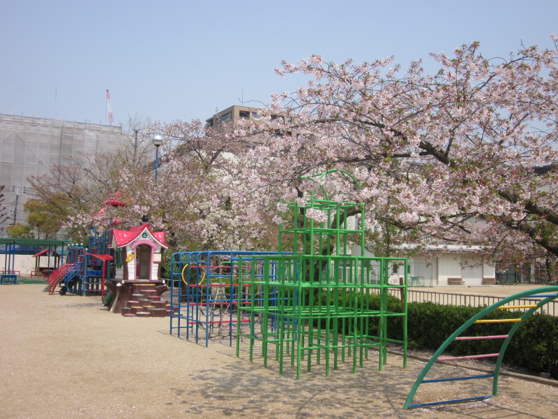 園庭では、咲き始めた八重桜と、3月に卒園した年長組が植えた、チューリップの花がきれいに咲いていました。