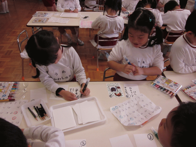担当の文字を決めて、それぞれ読み札と絵札を作ります(^o^)