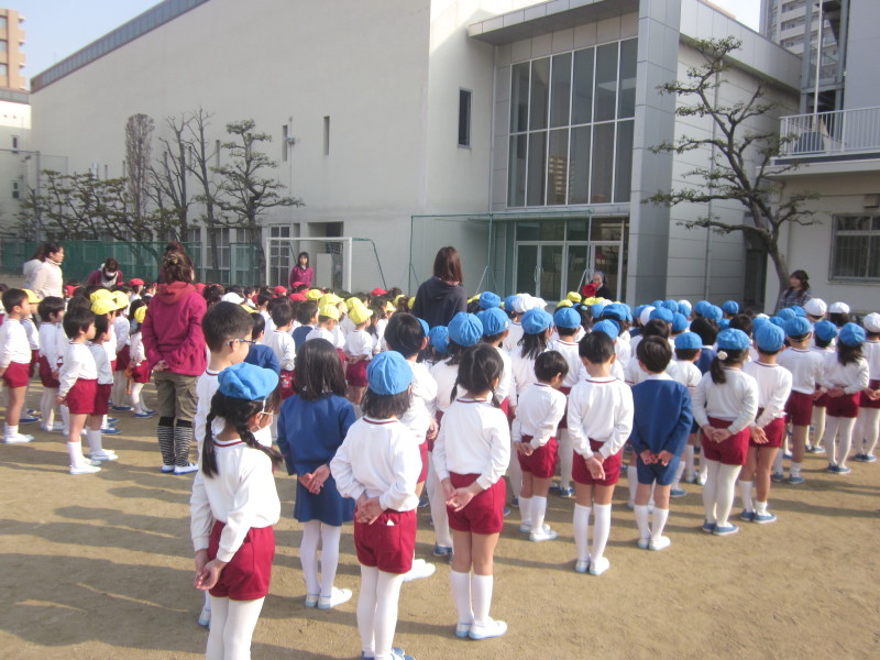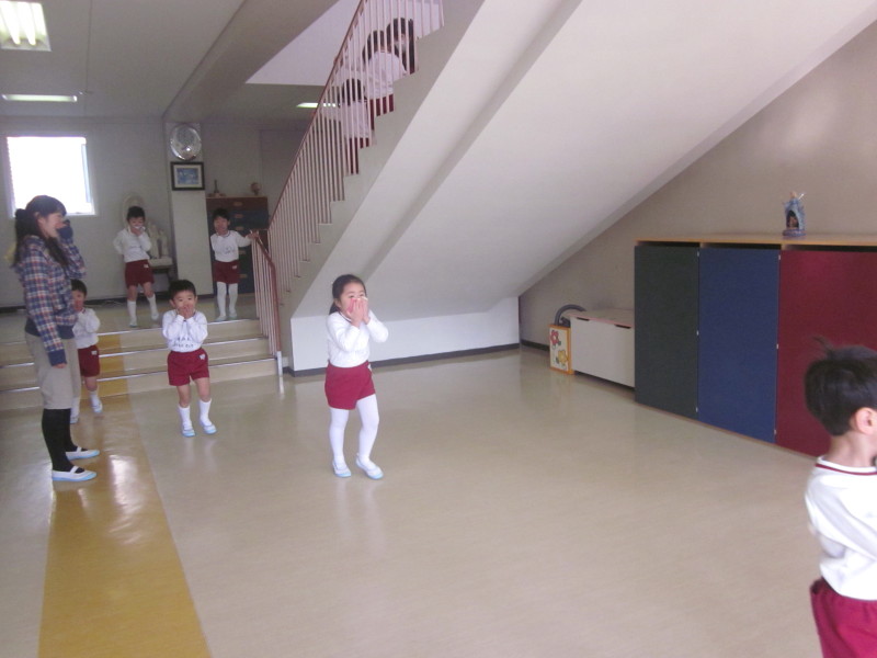 2階や園庭で遊んでいた子ども達は、突然のことで