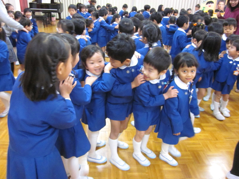 年長組、年中組のお兄さん、お姉さんは年少組のお友だちに