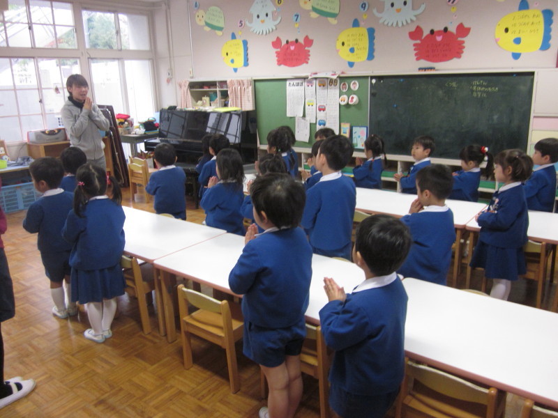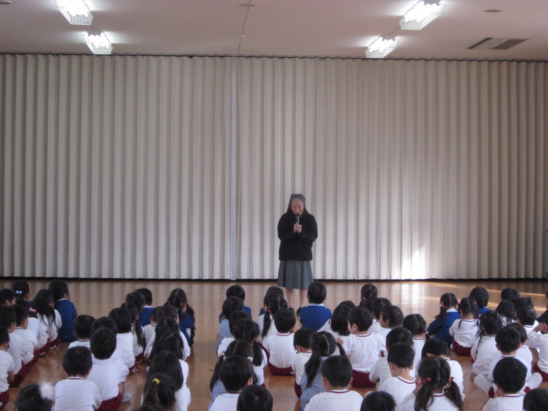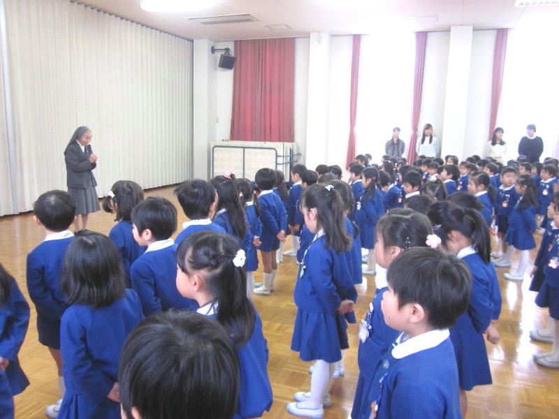 きちんと座って、園長先生のお話しを静かに聞いた後、