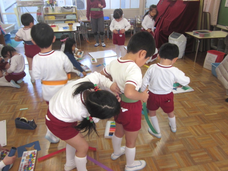 作って、子ども達はすっかりにんじゃになりきっていました♪
