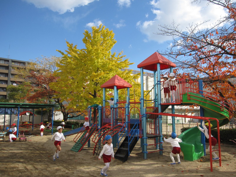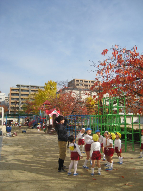 幼稚園の園庭にあるイチョウの葉が、