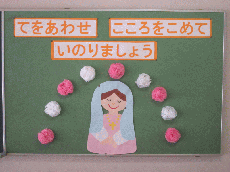 お祝いの時は終わりましたが、これからも、心のきれいなマリア様に近づけるように、徳の花を引き続き咲かせていきたいと思います。