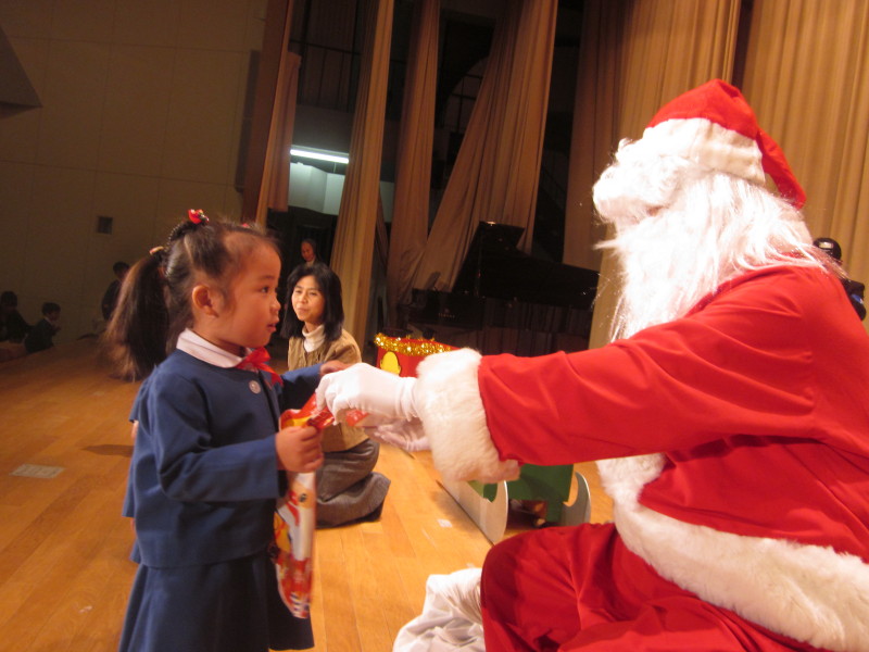 幼稚園の子どもたちにサンタさんから、