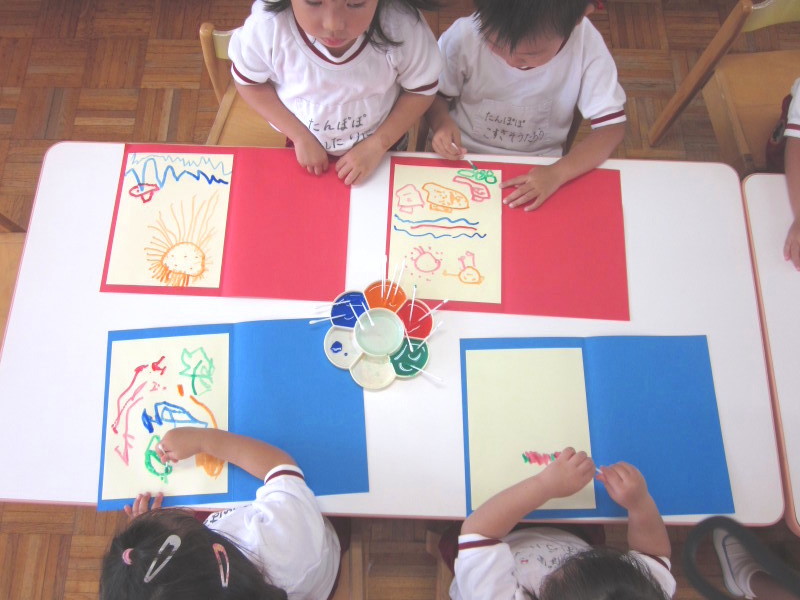 たんぽぽ組では、画用紙を「どこでもドア」に見立てて