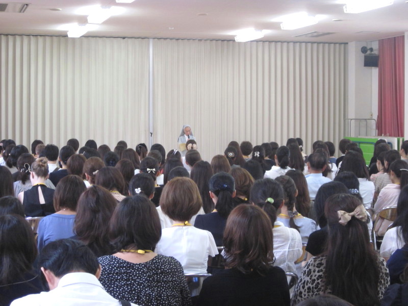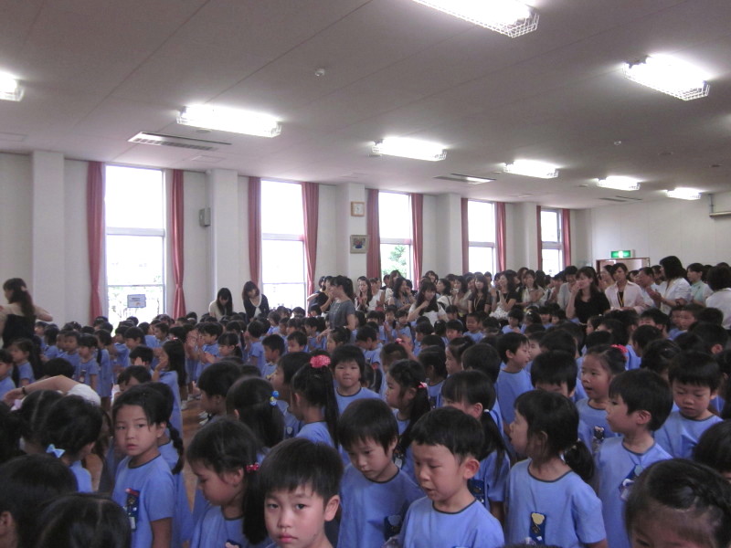 今日は幼稚園・小学校・中学・高校の全校生徒が集まって