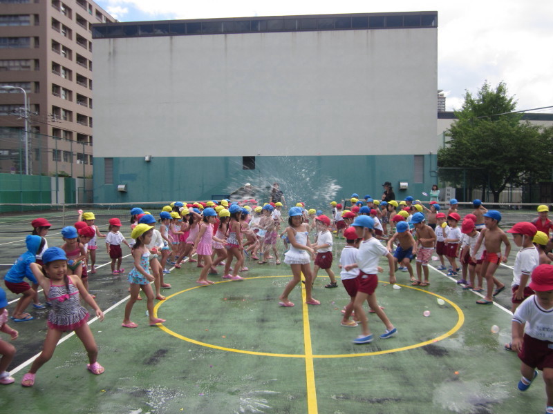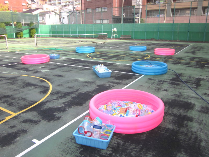 テニスコートでは、夏期保育恒例の水遊びが盛大に行われました!