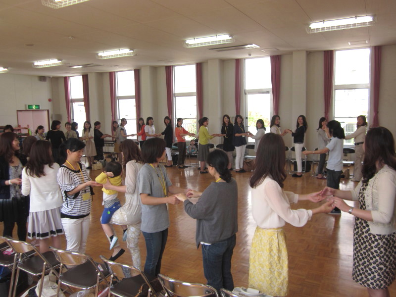 お母様方の中から、「あれ?うまくいかない…」なんて声がどこからか聞こえて来ましたが、「子どもたちもしてるのね…」と思いながら、楽しんでくださっていたようでした(^v^)