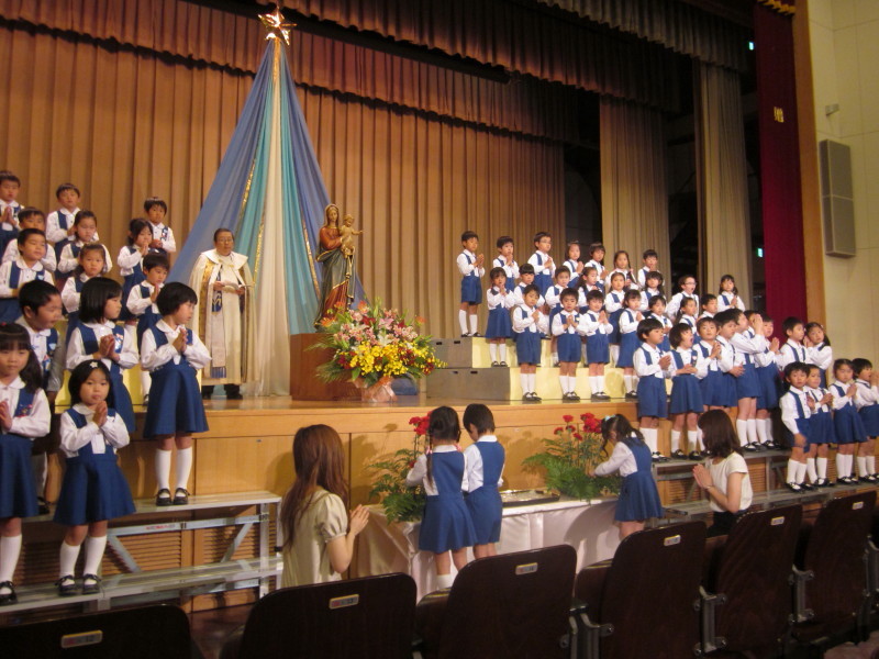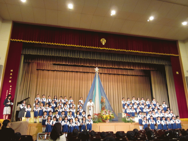 聖母祭は、城星学園に集う子どもたち、保護者の皆様、そして、教職員が心を一つに合わせ、これまでいただいてきた数々の恵みに感謝すると共に、世界の平和とご保護を願い求めて、聖母マリア様に祈りと賛美を捧げる日です。