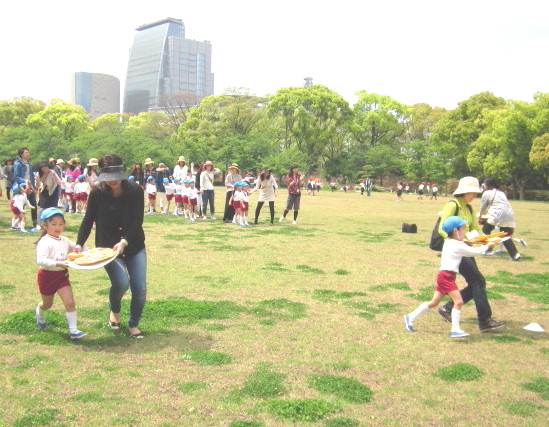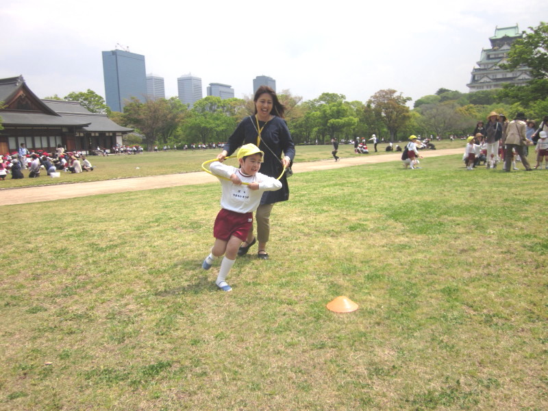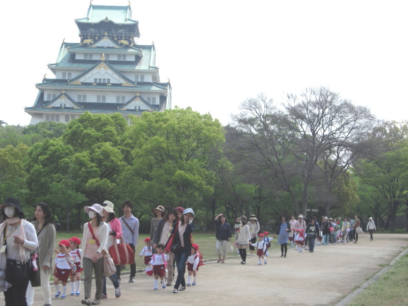 幼稚園から、大阪城の西の丸庭園まで歩いていきました。