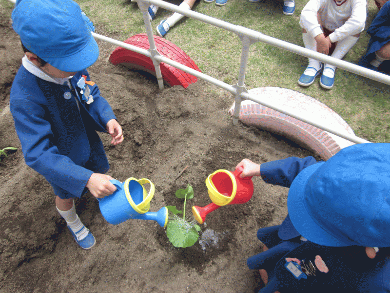 子ども達とお水をあげながら、