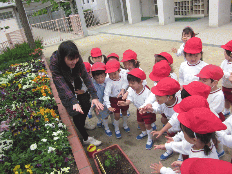 園庭でトマトの苗植えの始まりです☆