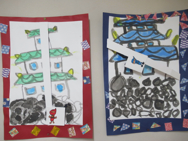 そして絵に長い帯を貼って、絵の中を動ける忍者を作ります!