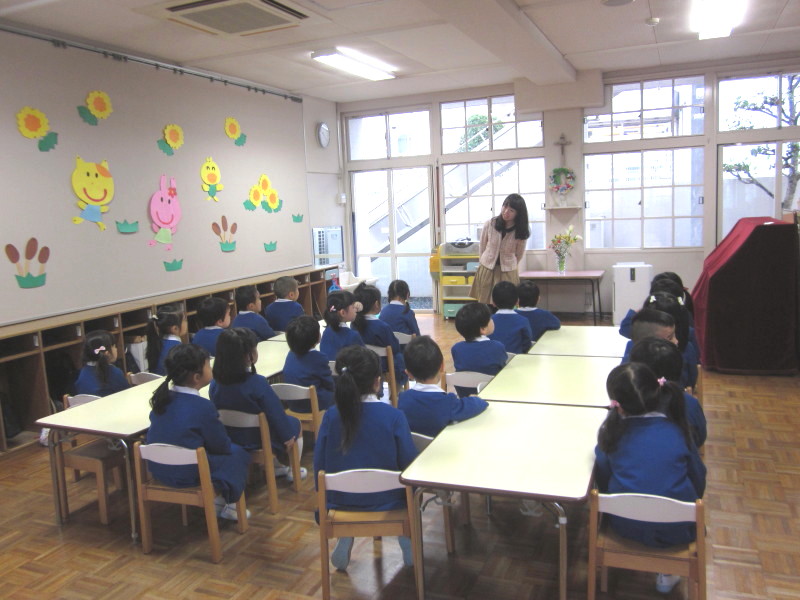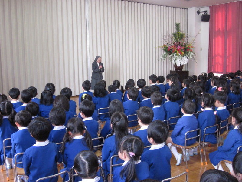 聖歌やお祈り、そして園長先生のお話もしっかりと聞いていました。