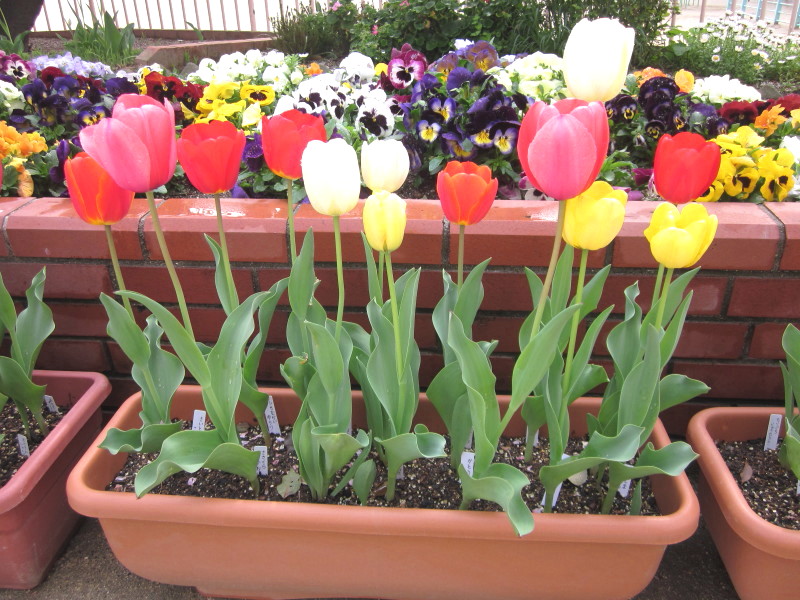 子どもたちを、綺麗に咲いたチューリップの花が迎えていました。