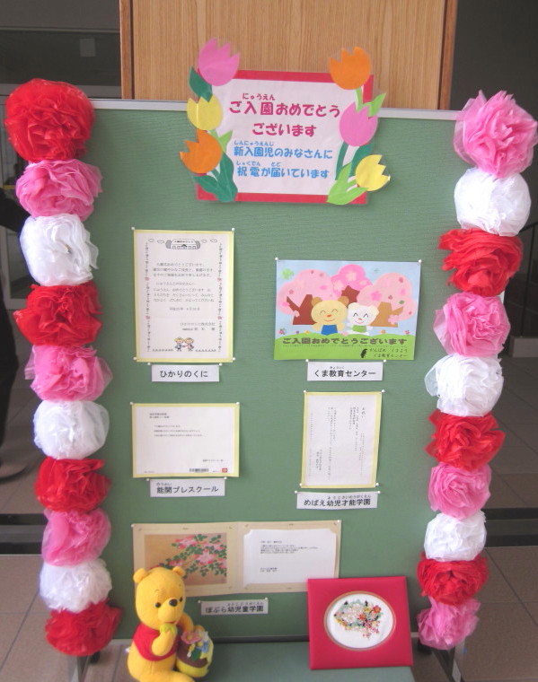 いろんなところから、新入園児のみなさんに、お祝いのメッセージがたくさん届いていました。