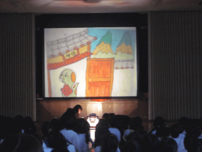 年中組は、絵本のお話を劇にして、それぞれの台詞をマイクで伝えながら