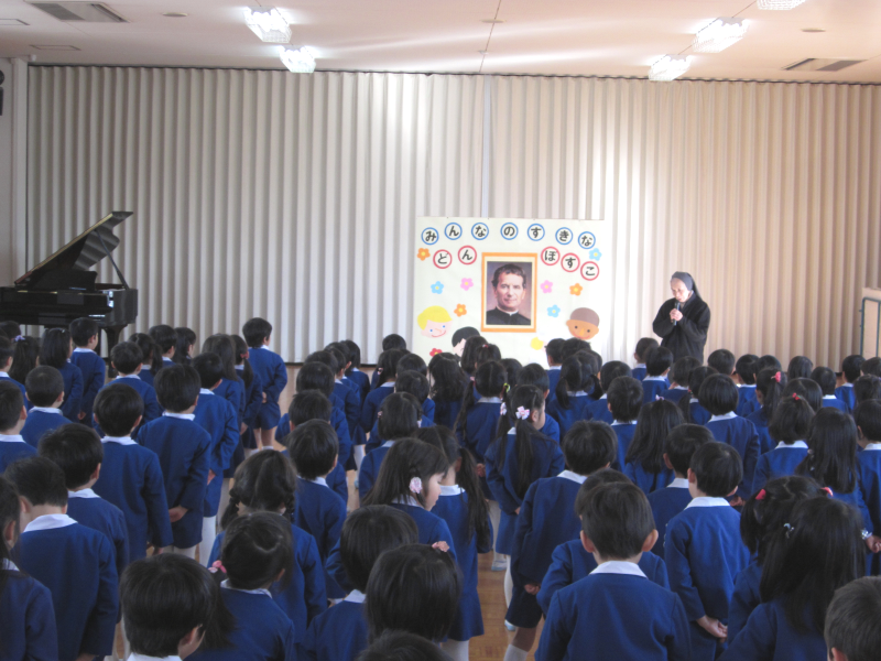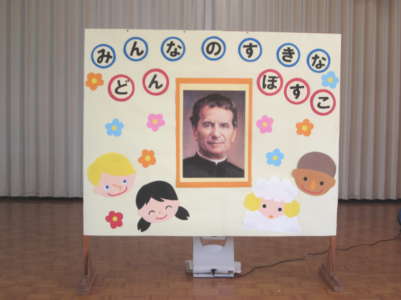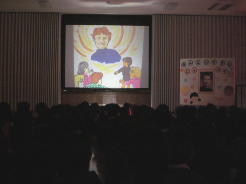 今日は、この学園の創立者、ドン・ボスコのお祝い会をしました。