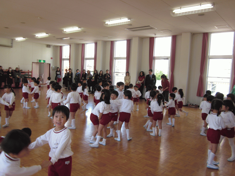 年中3クラスが、遊戯室に集まって合同朝礼をしました!