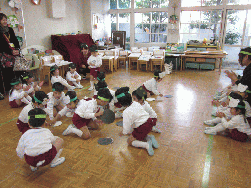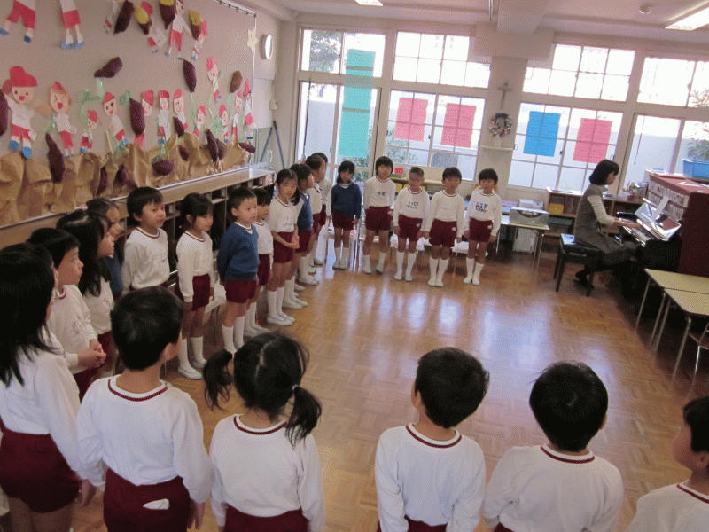 音楽は、クリスマス会で歌う「あめのみつかいの」の歌を教えて頂きました。