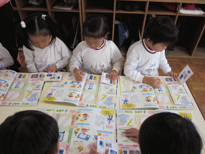 しりとりなど身近なものについて、話しをしながら読み進めていきました。