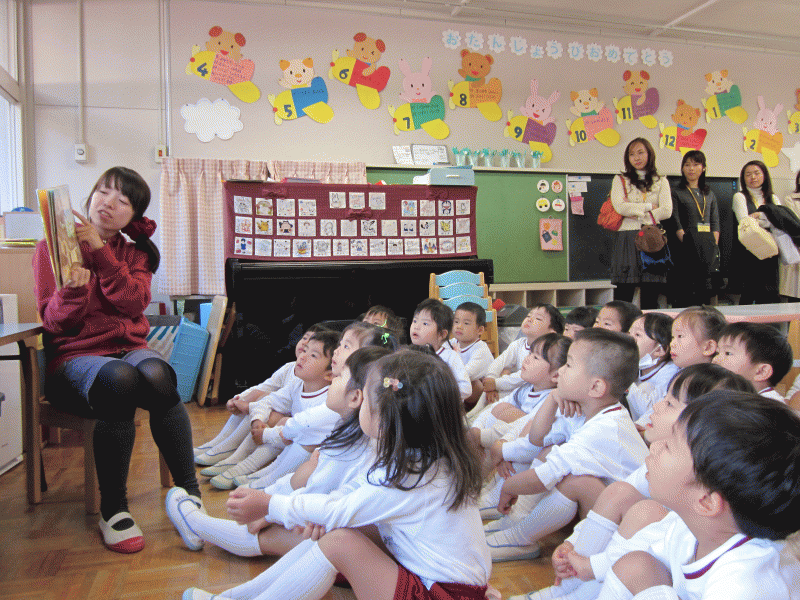 最初に、動物さんの遠足の絵本を読んでもらいました。