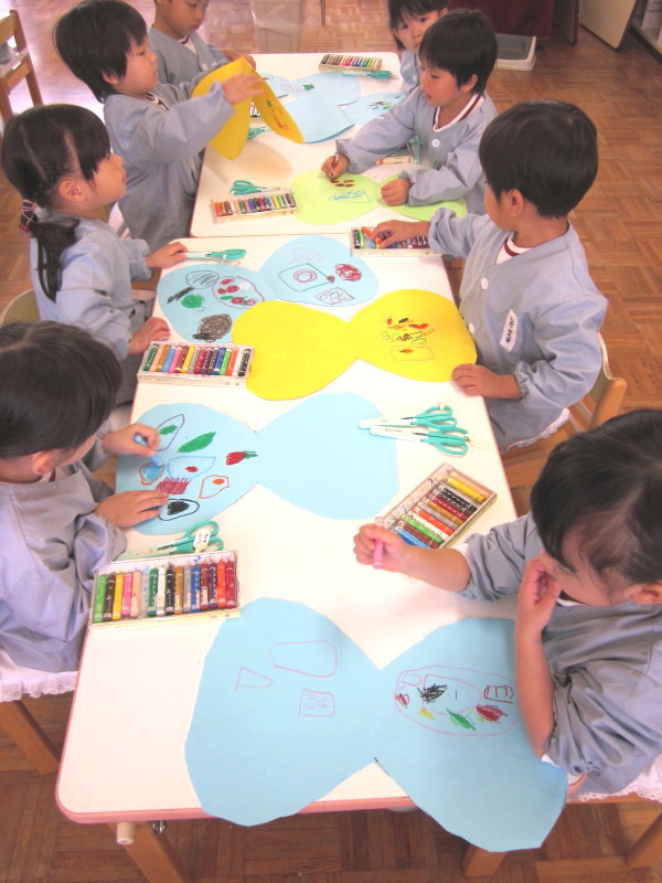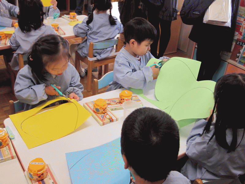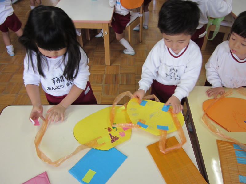 年少組の園開放2日目は、「リュックサック作り」です☆