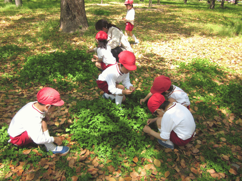 図鑑を持って散策をしたり、草花を摘んで冠作りをしたり、