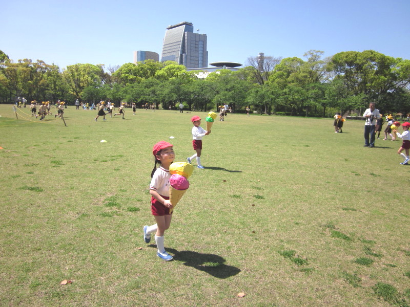おにごっこをして、広い芝生の上を走ったり・・・