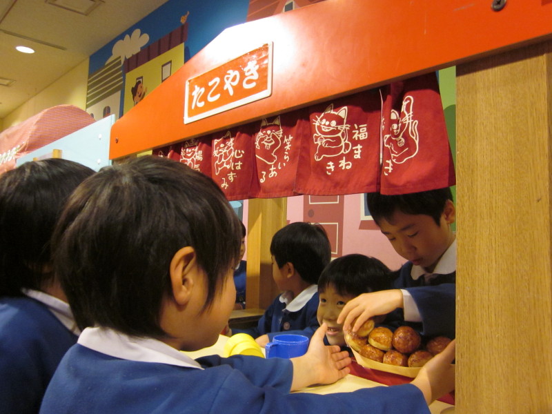 お店屋さんコーナーでは、たこ焼き屋さんが大盛況!