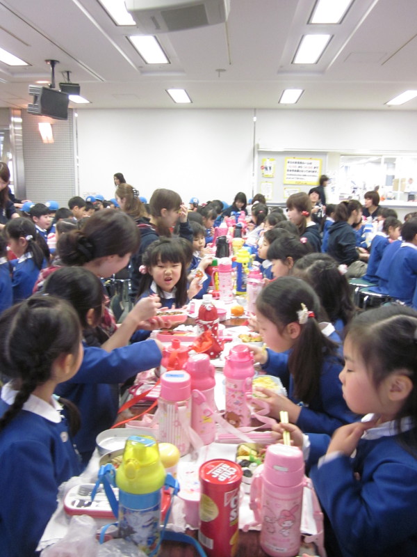 グループごとに今日の話をしながら、楽しそうに食べていました。