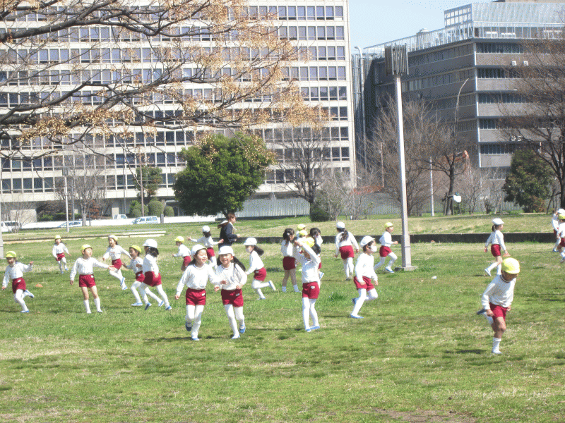 なにわのみや公園までは、幼稚園から歩いて10分くらい。