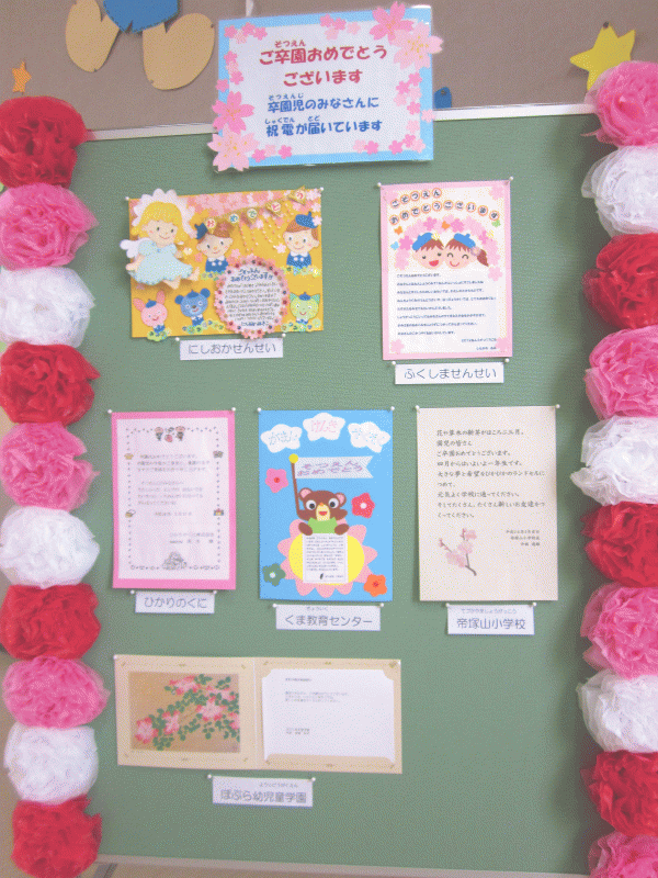卒園式を迎えたみんなを、あたたかく見守ってくれています☆