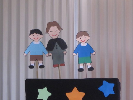 先生からのプレゼントは、昔話『かさじぞう』のペープサートでした。
