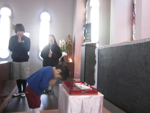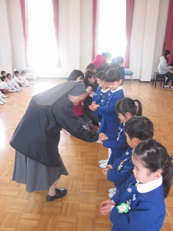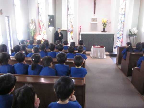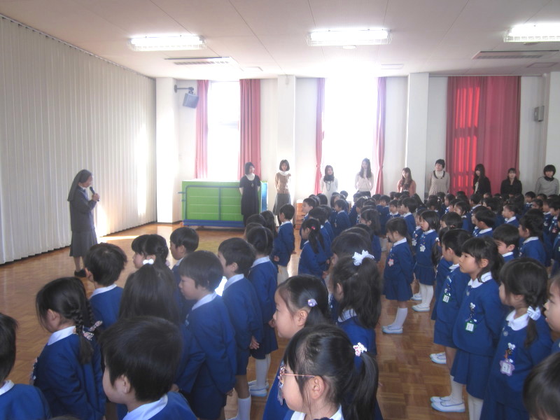 バスで帰る子どもたちも、そして、幼稚園からお家の人と一緒に帰る子どもたちも、「冬休みも病気やけがのないように、無事に過ごせますように…」とお祈りを捧げて帰りました。