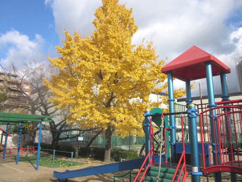 そんな中、園庭のイチョウの木は葉がひらひらと舞い、一面金色の じゅうたんに覆われて、美しい姿を見せてくれています。