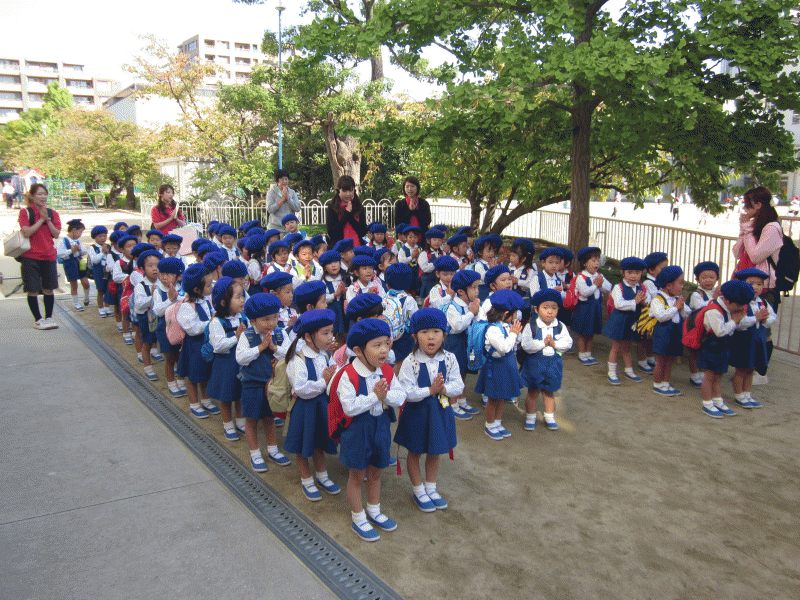 登園したら園庭に並んで、先生のお話や園長先生のお話を