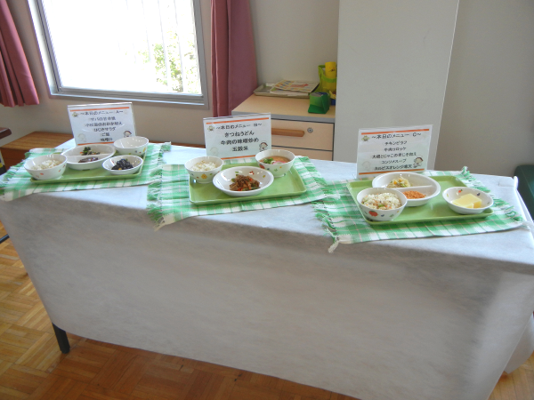 試食のメニューは、3食分の献立の料理です。