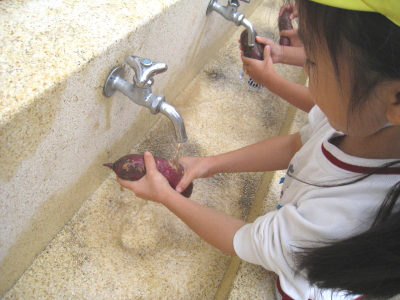 前日に、取れたサツマイモをみんなで綺麗に洗いました(^^)
