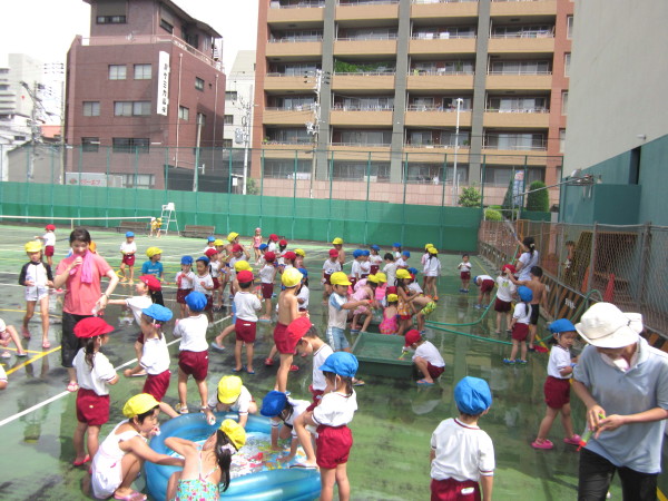 テニスコートでは、水でっぽうやホースを使って思いっきり遊びました♪♪